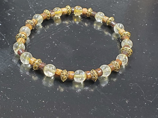 7 1/4" Citrine/Brass/Koa Wood Stretch Bracelet