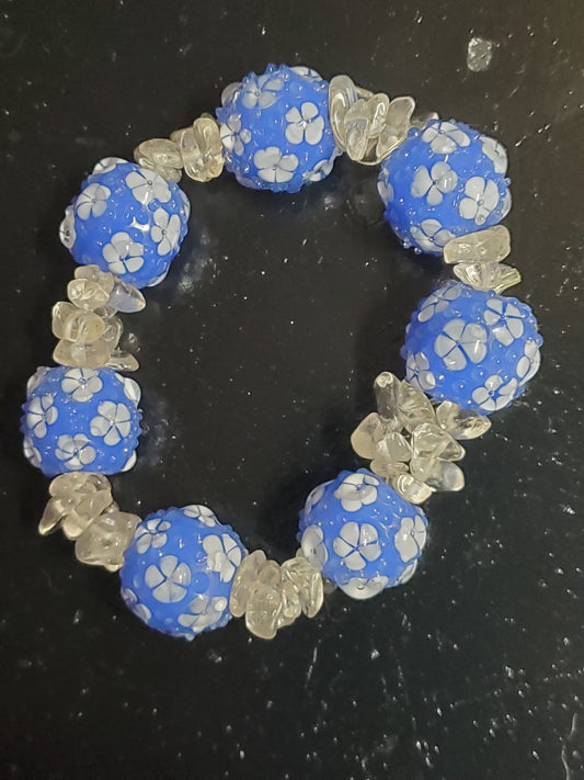 6" Blue Quartz and Hand Blown Bead Stretch Bracelet