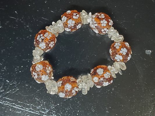 6'Amber Blown Glass and Quartz Chip Stretch Bracelet