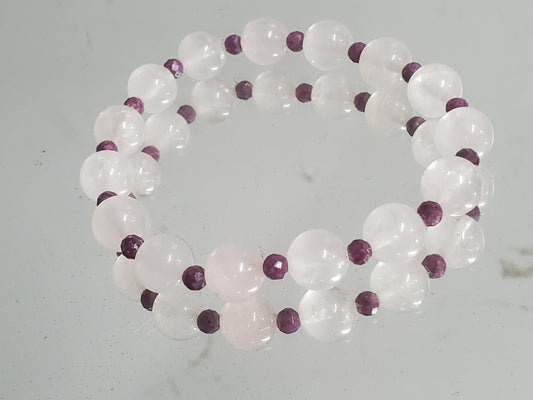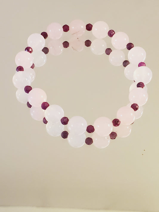 7 1/4 Rose Quartz And Rubies StretchBracelet